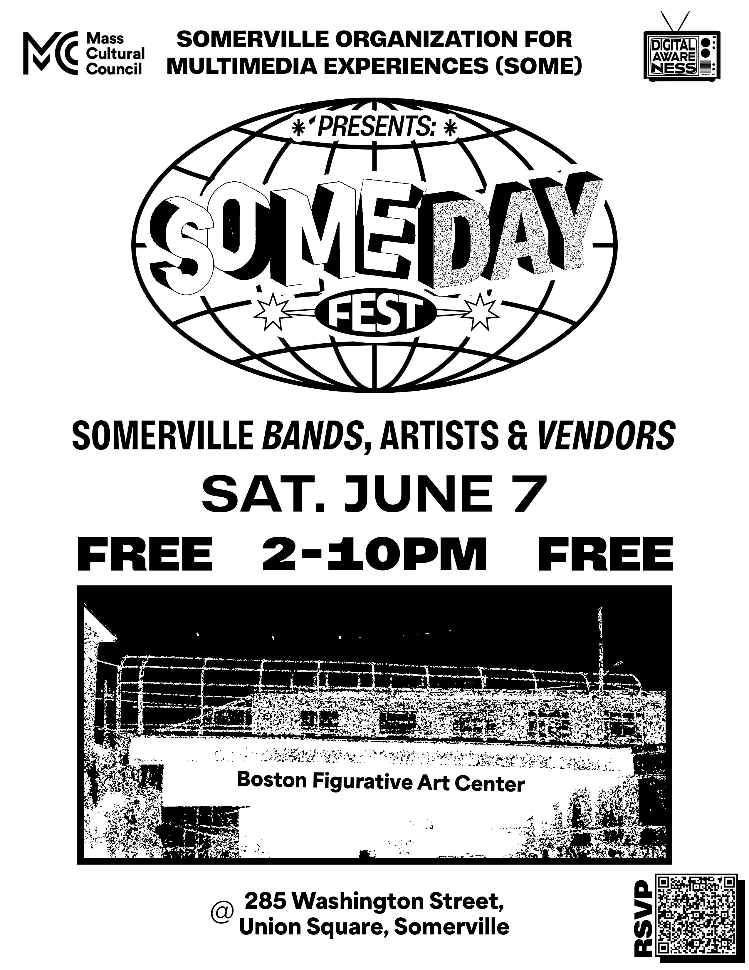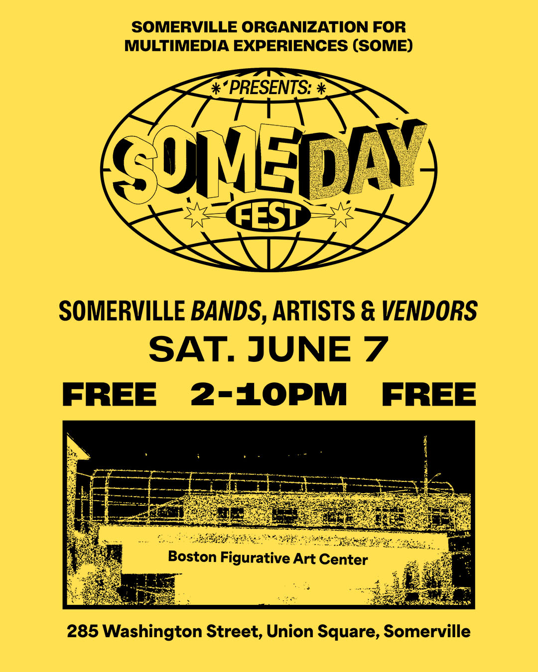 Somerville. Thousands and thousanda of artists, musicians, designers, rock-climbers, vintage-clothes wearers and other free-spirits call these colorful triple deckers home. It’s about time they had a music festival. When I reached out to the guitarist of my favorite local band to see if they wanted a flyer for a show, he told me “great timing,” because he had a big project for me. He was putting together a free music festival, comprised of all somerville-based musicians, with all somerville-based artists and vendors.